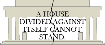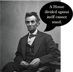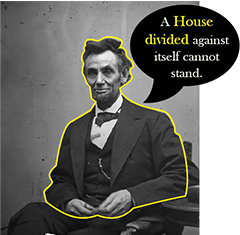 An important principle that we learned in my organizational principles class was unity. I choose Abraham Lincoln’s famous unity quote, “A house divided against itself cannot stand”. This is a popular quote will with a profound meaning. I wanted to give a simple visual to make it easier to communicate that meaning.